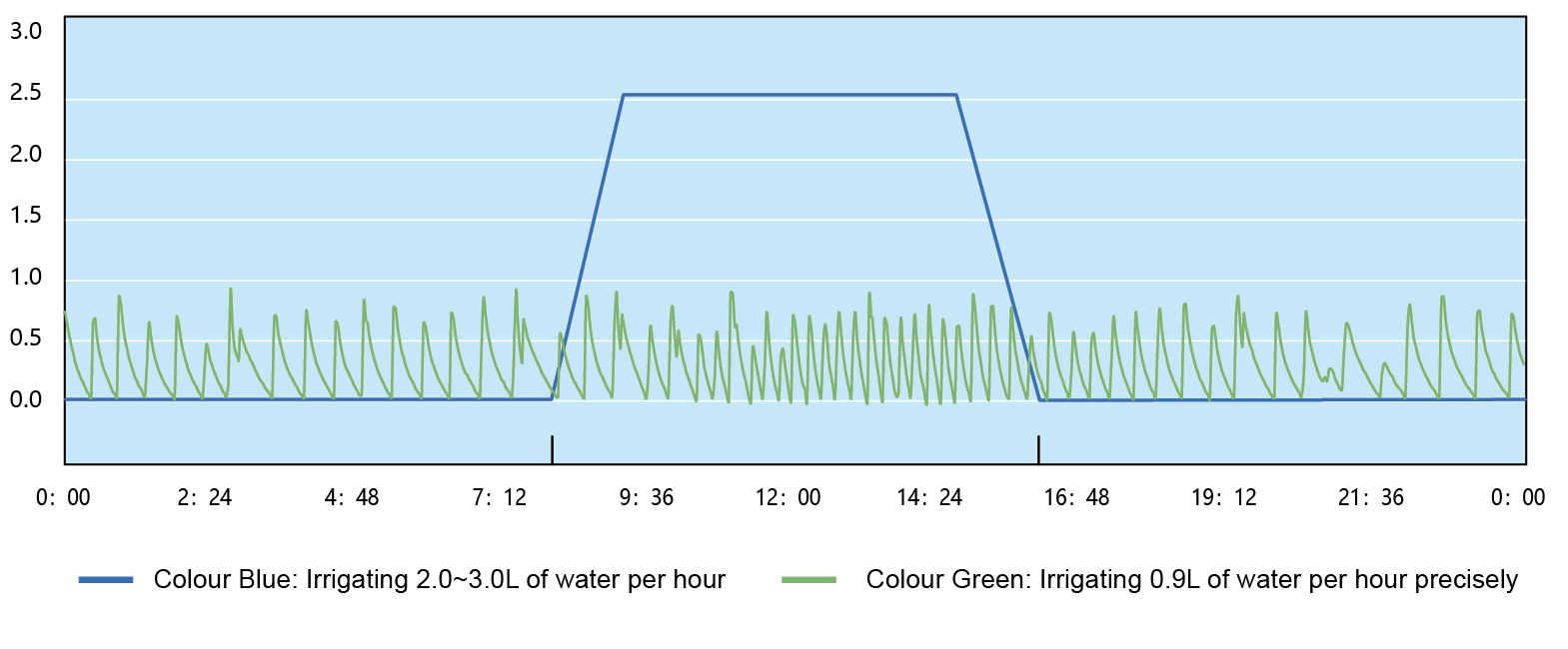 The traditional irrigation system irrigates with more water and longer time, which causes a lot waste and evaporation of water.