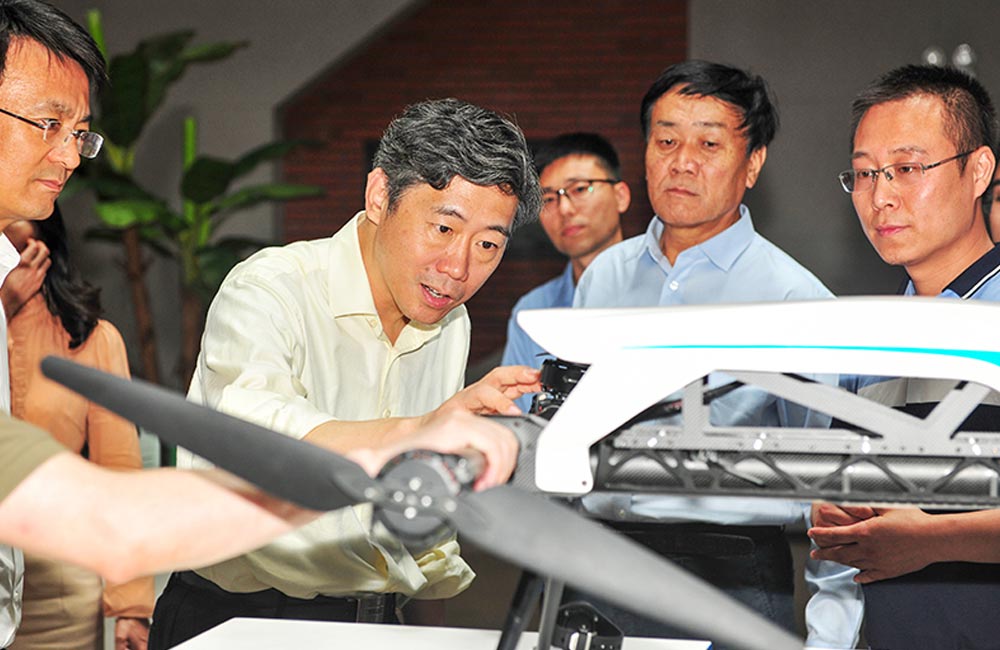 随后,李稻葵教授一行人又在各位领导的陪同下,来到远大集团科技园展厅,先后参观了新型装配式样板房和精准农业种植示范区。近距离观看并感受了远大智能机器人、AA滴灌系统、新型高效农机、电气传动控制系统等等科技创新成果。远大装备科技公司总经理,韩旭博士详细介绍了远大科技园近几年的科技创新成果,仔细解释了各科技创新产品的具体内容和技术,李稻葵教授由衷地说道,原来这些产品是这样运行的,困扰我多年的技术谜题终于被揭开了。